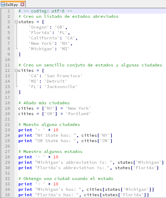 Volviendo a los diccionarios, debería empezar a darme cuenta de que ésto es similar a usar un diccionario, aunque la síntaxis es diferente. Compara: